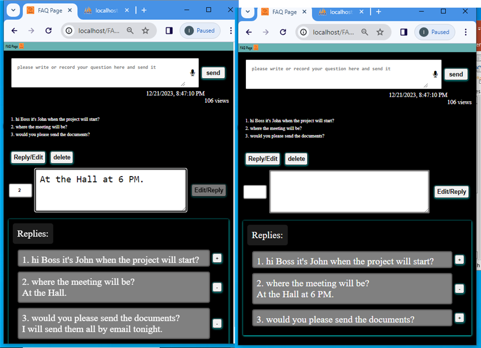 It Is A Web Page Where Your Clients/team Can Ask You Or Check Your Answers Within A Private Network Or Over Internet By Adding It In Your Website.