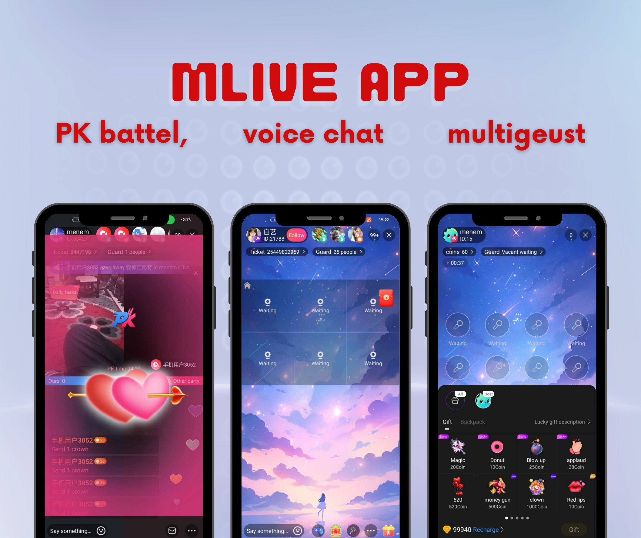 Users can apply to be on the mic, and the anchor can agree or reject it. Users who are on the mic can engage in interactive voice chat.