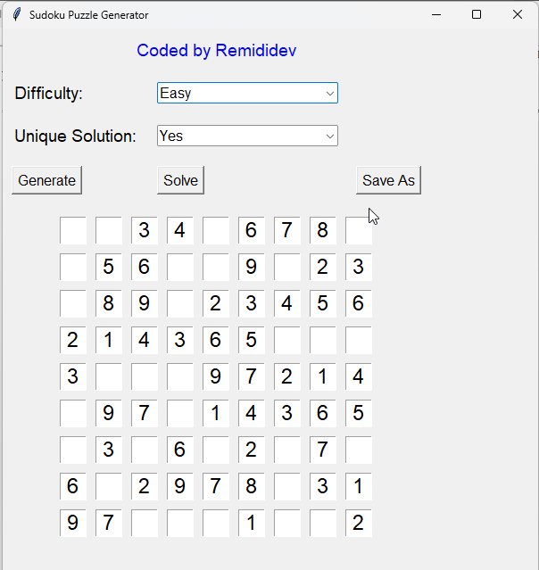 Generate, Solve, And Save Sudoku Puzzles With Customizable Difficulty Levels.