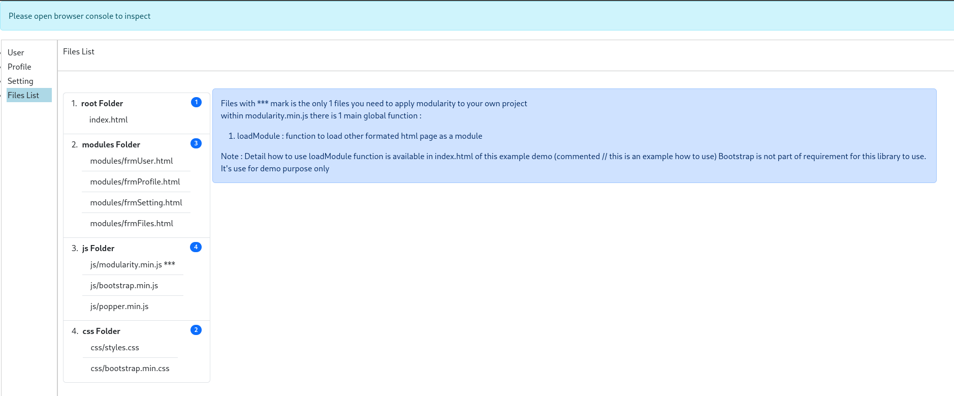 Small Footprint Javascript Library To Turn Your Html+javascript Based App To Modular Module Based App Without Any Frontend Framework.