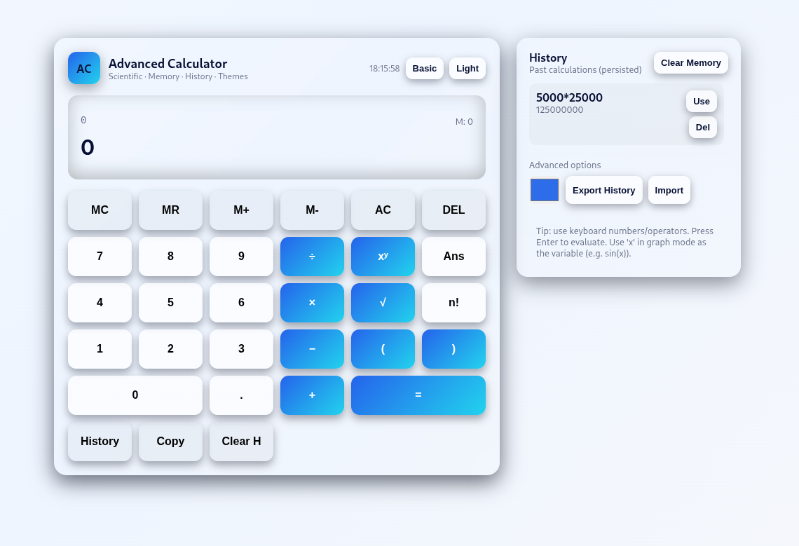 Advanced Calculator Modern Web-Based Scientific & Graphing Calculator