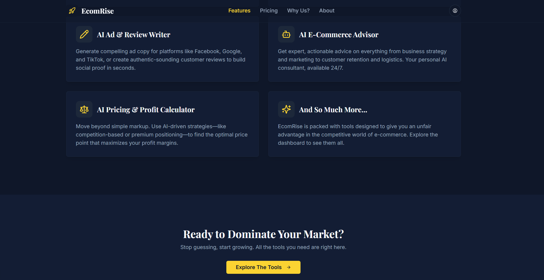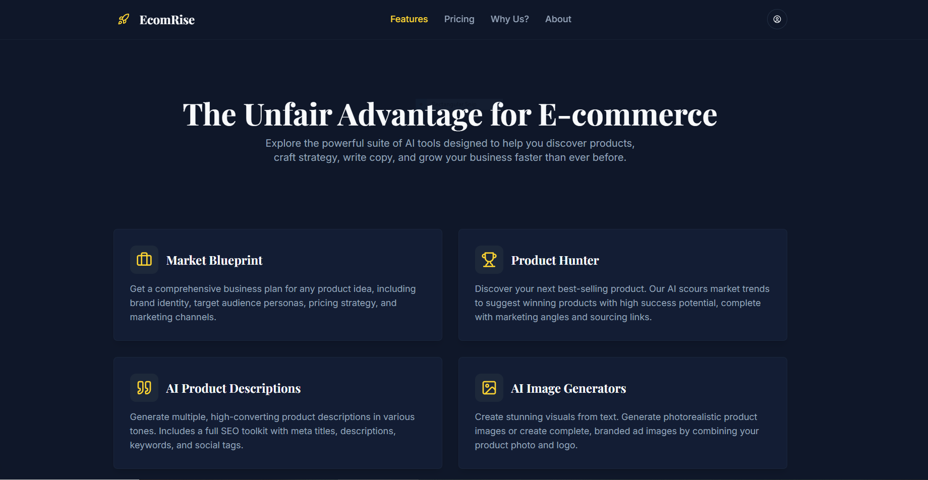 EcomRise: Fully-built AI SaaS Toolkit For E-commerce, Ready To Launch Instantly