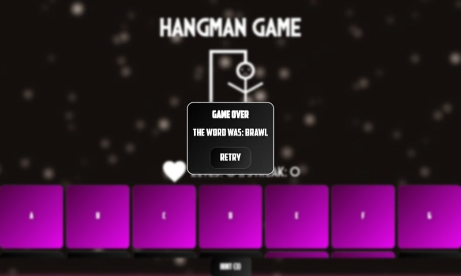 Classic Hangman Word Game With Clean UI, Sound Effects, And Multi-category Words.