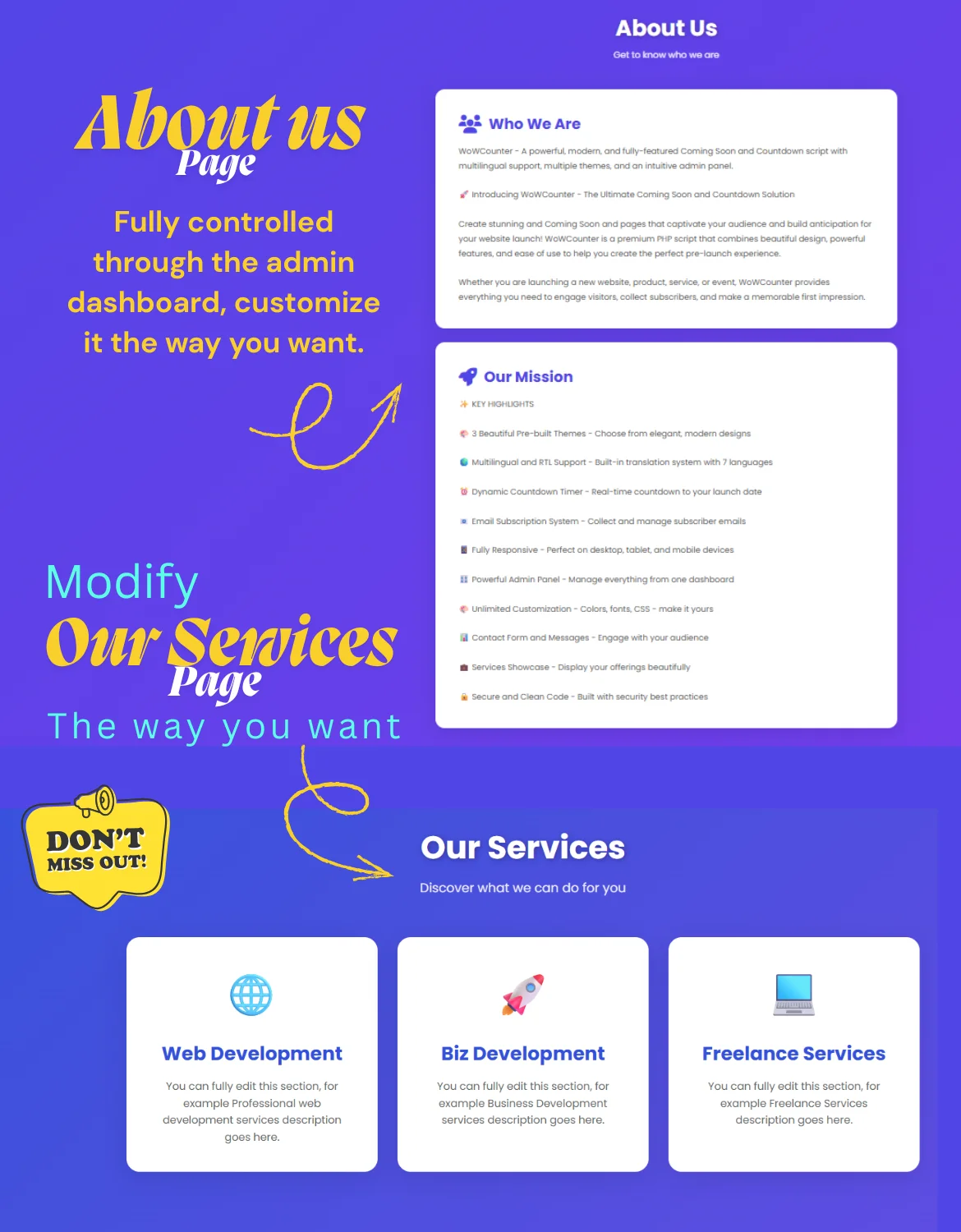 WoWCounter - Coming Soon & Countdown Script With Admin Panel, Analytics And Multilingual RTL
