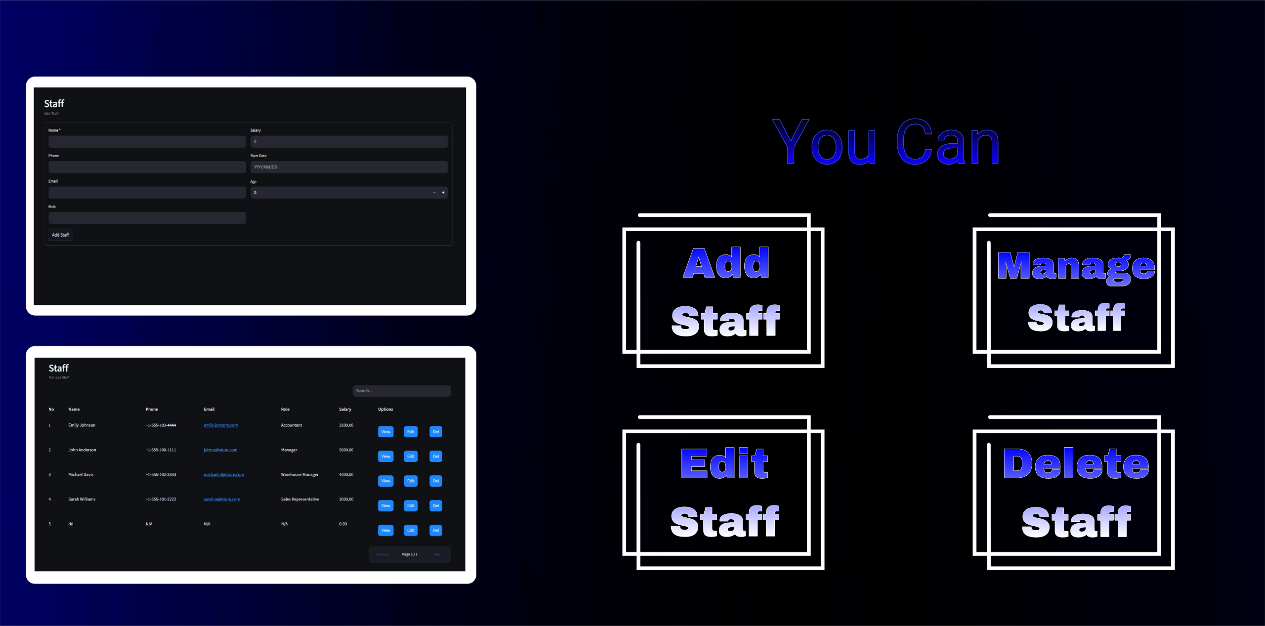 • Staff management