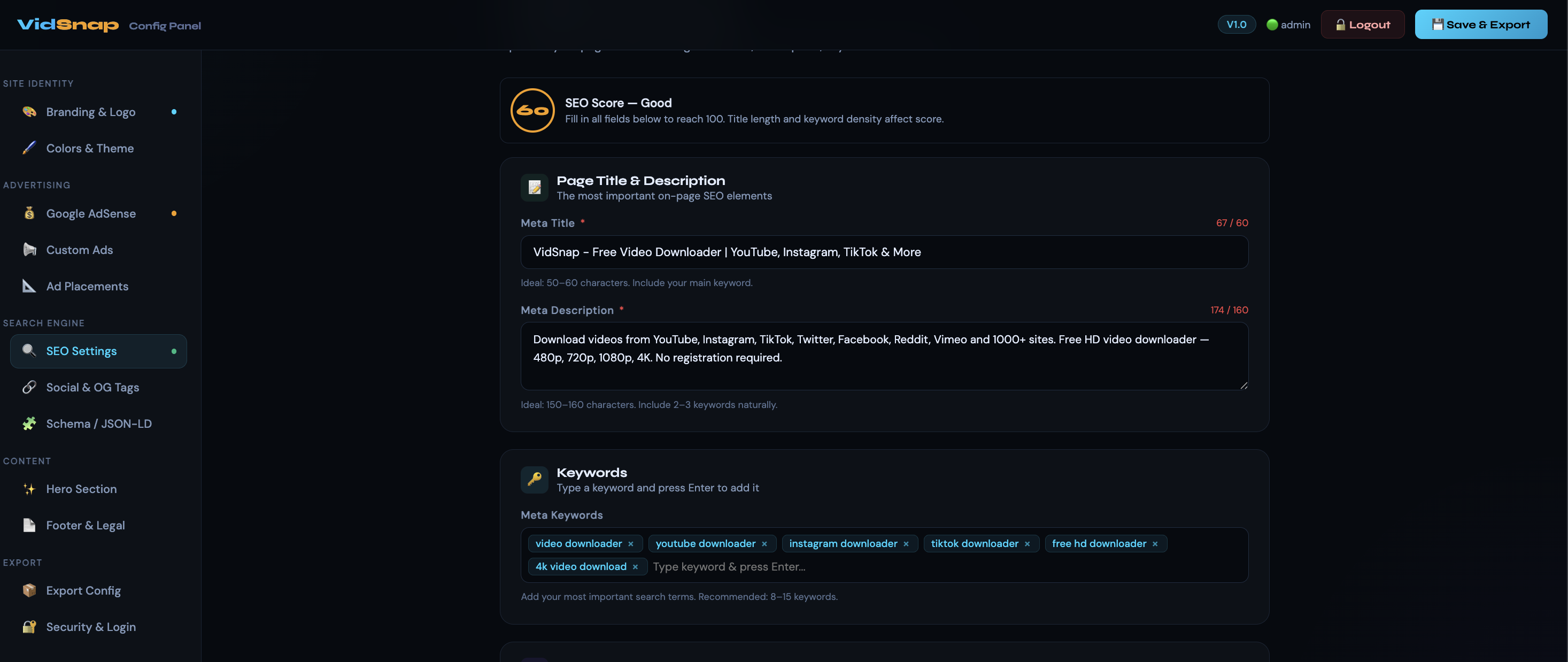 Video Downloader Site With Admin Panel, SEO Pages, And Ad Controls.