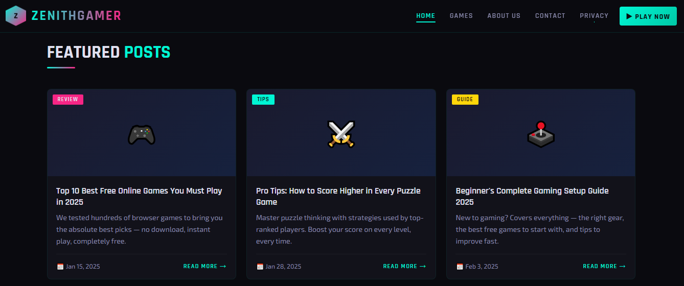 Zenith Gamer - AdSense Ready Gaming Template For Blogger & WordPress