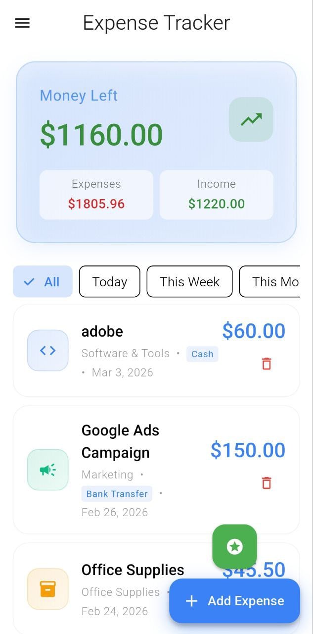 Production Ready Flutter Expense Tracker With Debt Management Contacts Analytics Export Features And Clean Scalable Architecture. Fully Offline With SQLite And Built For Easy Customization And White Label Distribution.