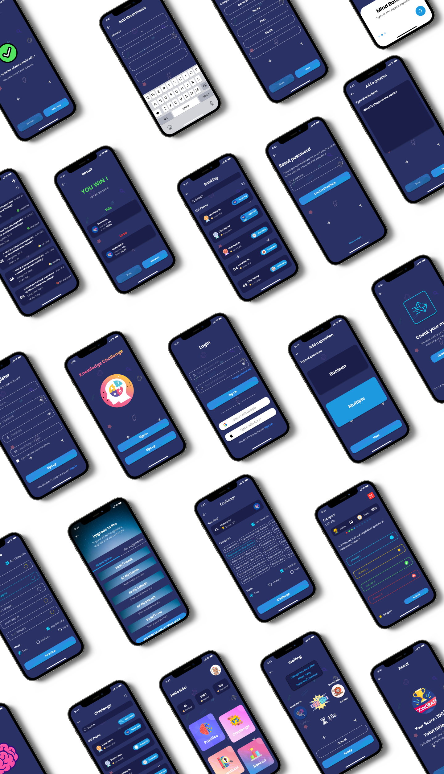 Knowledge Challenge Kit Is A High Quality Pack Designed For Quizz Game Mobile App. The Package Containing Tons Of Useful Elements And Components To Create Mobile Apps. It Also Includes +40 Ready-made Screens For IOS To Make Your Design Flow Simple. We Will Update More And More Categories And Styles.