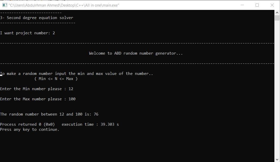 I Made A Code For A Program That Contains Three Amazing Projects In C++ ( Random Number - Math Calculator - Second Degree Equation Solver ) ,,, Which Consists Of 200 Lines Of Code .