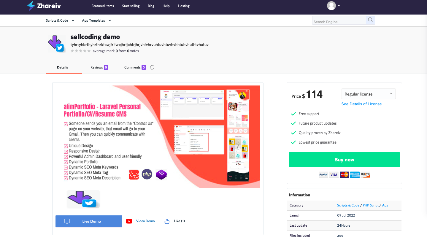 Sell Coding Buy Premium PHP Scripts, App Templates V 1.0
