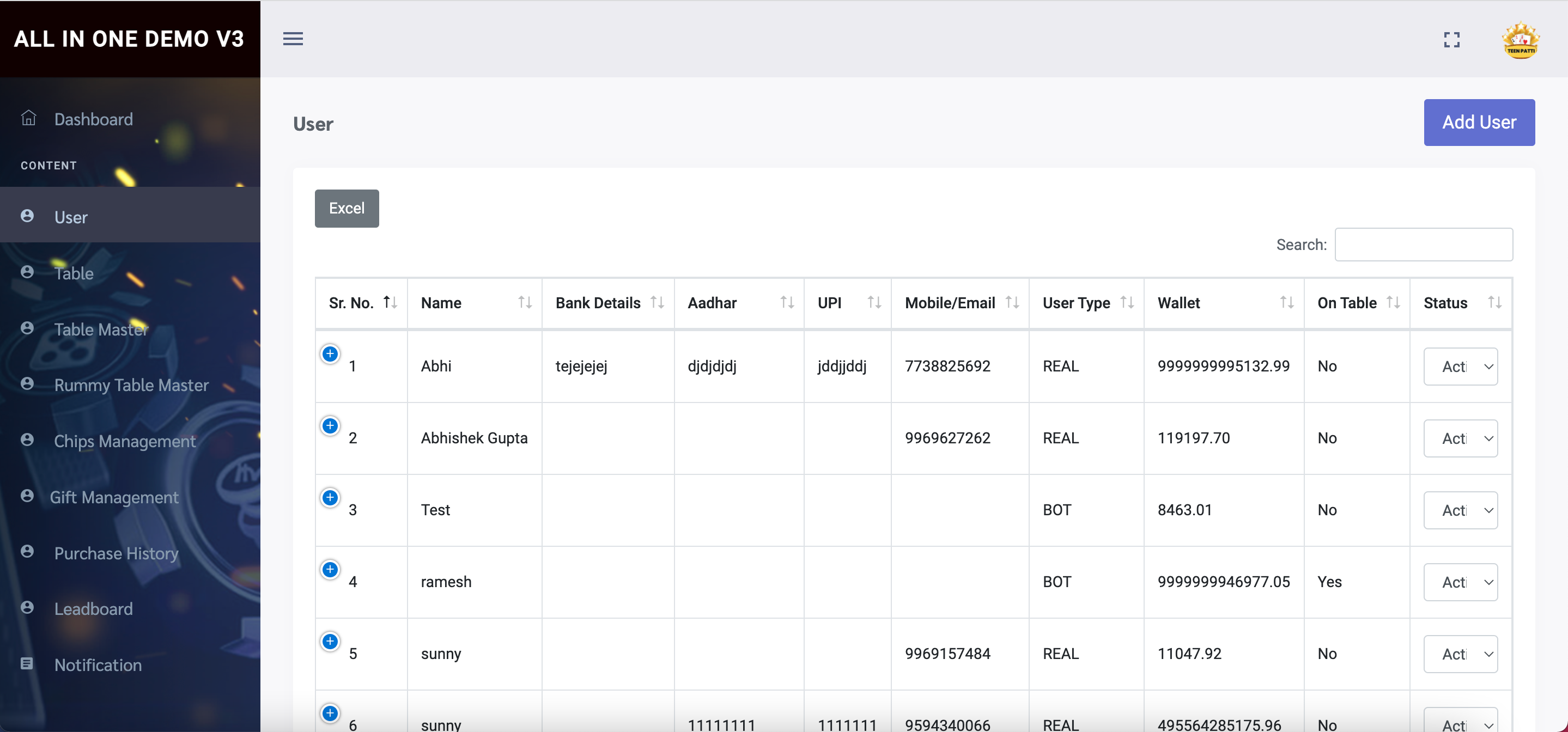 [Rejected] All In One (Teen Patti , Rummy Dragon Vs Tiger And Andar Bahar)